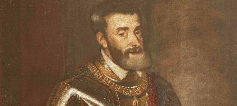 La mostra, verrà aperta al pubblico oggi, 6 aprile 2022, è articolata in un percorso scandito da pannelli che illustrano la figura dell’imperatore e che ne consentono l’inquadramento anche con gli altri personaggi: Ariosto, l’Aretino, Erasmo da Rotterdam e gli stessi padroni di casa, Azzo II Besta e la moglie Agnese Quadrio, espressione di una vera e propria corte rinascimentale.