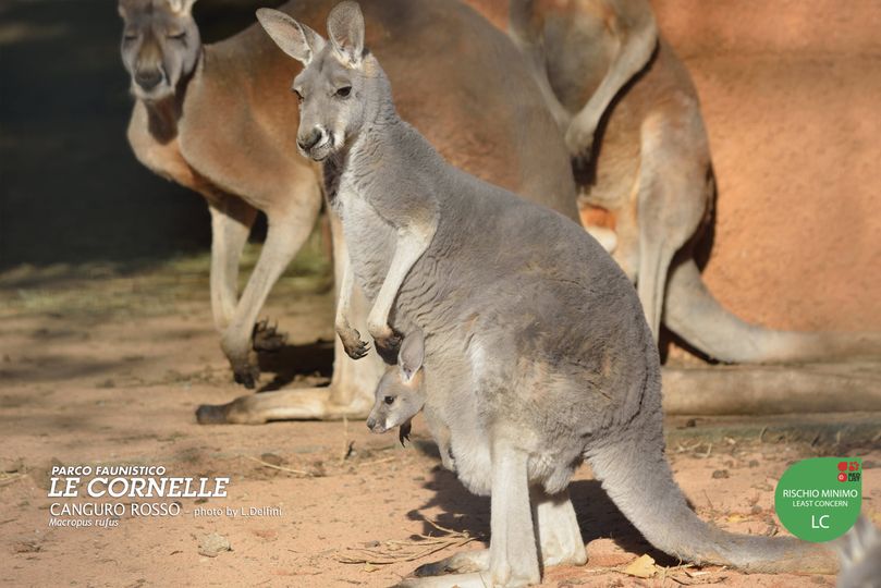 Il cucciolo di Canguro rosso è figlio di un maschio arrivato al parco tre anni fa da uno zoo francese e da una femmina nata al parco nel 2015. Il piccolo sta approcciando la vita fuori dal marsupio materno in cui ha concluso la prima fase di sviluppo e in queste settimane è stato possibile avvistare il piccolo musetto del cucciolo in rare occasioni. Questo perché la gestazione dei marsupiali è decisamente peculiare, ha una durata di sole quattro settimane, il piccolo viene partorito ancora in fase embrionale e per i successivi mesi, vive e si nutre nel marsupio materno.