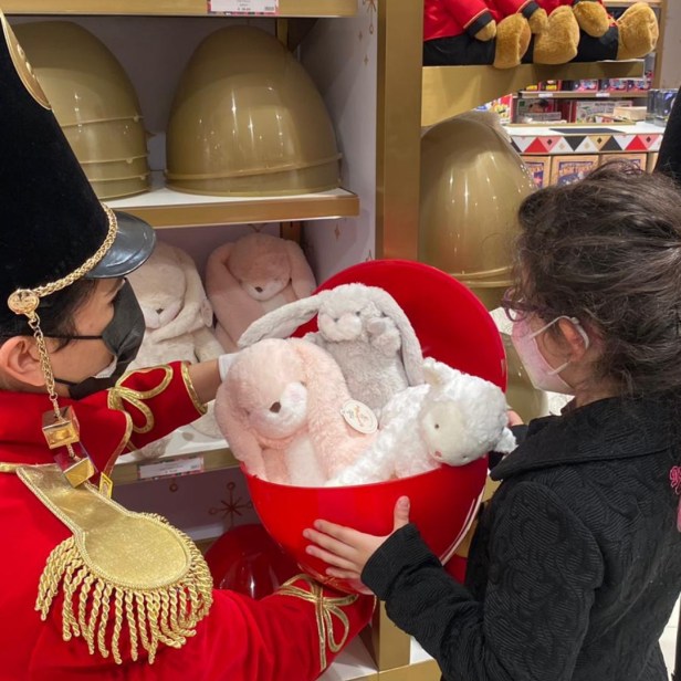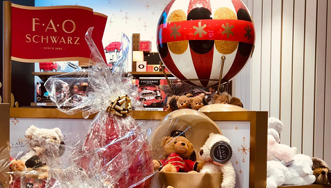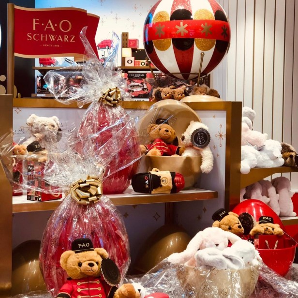 In negozio è pronto un allestimento ad hoc dove scegliere peluche e giocattoli a marchio FAO Schwarz, macchinine, giochi educativi e creativi, coniglietti personalizzabili Bunnies by the Bay, giochi di magie, bambole e molto altro.