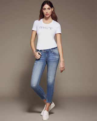 La nuova collezione Met Jeans si ispira al DIAMANTE: dalla notte dei tempi sinonimo di perfezione, brillantezza e indistruttibilità. Diventa simbolo, ma anche logo, nella nuova collezione che si arricchisce di luccicanti applicazioni ed eleganti stampe.