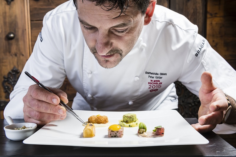 A Mauls, Vipiteno (BZ), nella Gourmetstube Einhorn dello storico Romantik Hotel Stafler, lo chef 2 stelle Michelin Peter Girtler compie piccole magie culinarie, con la complicità di prodotti locali eccellenti – che arrivano direttamente dal podere della famiglia Stafler o dai contadini della zona – e di una creatività nell’abbinare e impiattare, che incanta occhi e palato.