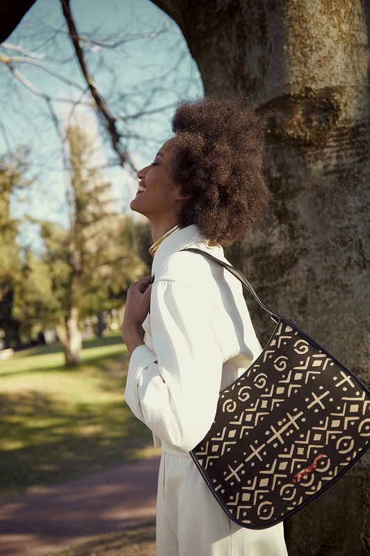 Realizzate in collaborazione con EFI, Ethical Fashion Initiative, queste borse ecosostenibili si fanno manifesto del rispetto per l’ambiente e della tutela del lavoro femminile delle comunità africane in via di sviluppo: al centro del progetto c’è il Burkina Faso, da cui provengono sia il cotone utilizzato per la creazione delle borse, che la manualità delle artigiane coinvolte nella realizzazione dei tessuti che compongono l’intera collezione.