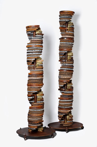 Il flusso inarrestabile del suo pensiero artistico si rivela nelle vibranti colonne “tortili”, in grès e ferro, di Castore e Polluce (2022), due disarmanti racconti che creano un’astrazione inedita e personale, evocano la terra e la sua forza, una materia viva e in continuo mutamento.