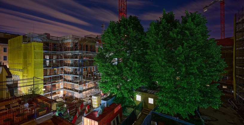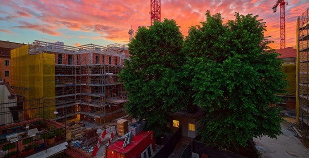 Per 39 giorni consecutivi scatta quindi una media di 30 fotografie al giorno, dalle prime luci dell’alba fino alla notte, con un solo soggetto, l’unico che riusciva a vedere dalla ua finestra: un cantiere, simbolo di qualcosa che dovrebbe per definizione muoversi, ma che per cause di forza maggiore rimaneva inattivo e immobile, come tutti noi.