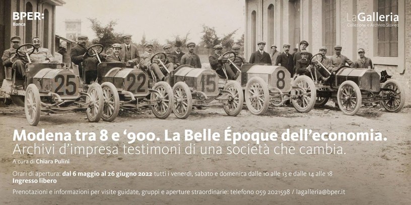 “La Galleria. Collezione e Archivio Storico” di BPER Banca presenta, fino al 26 giugno 2022, presso gli spazi espositivi di via Scudari 9 a Modena, “Modena tra 8 e ‘900. La Belle Époque dell’economia“, a cura di Chiara Pulini, la prima mostra che ha come protagonisti i documenti dell’Archivio Storico BPER Banca.