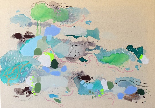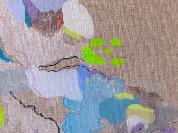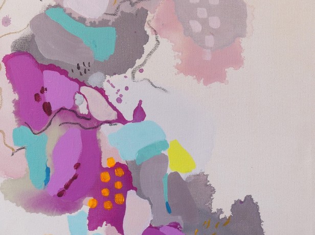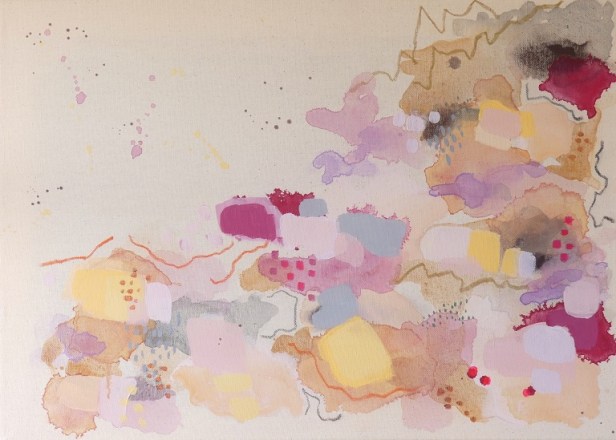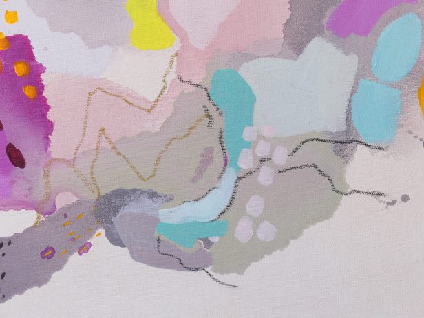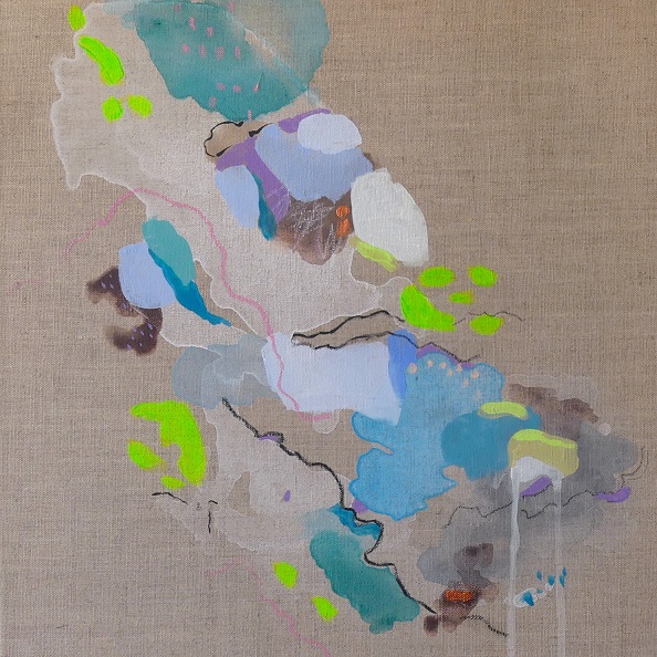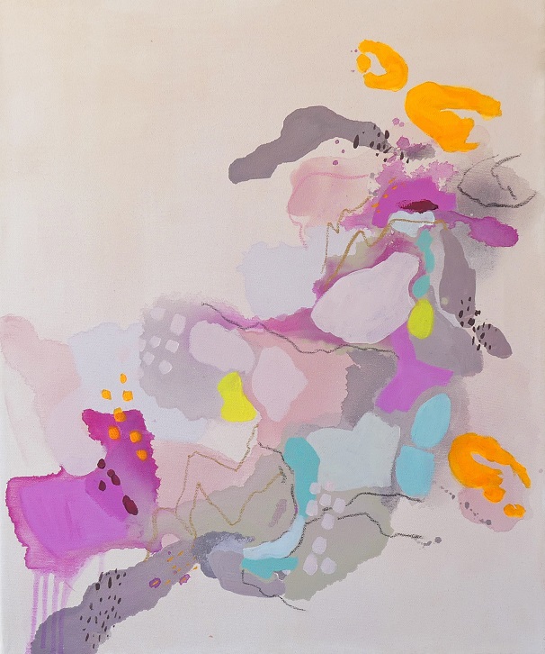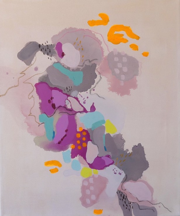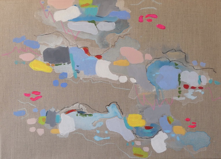 Il dialogo tra segni e colori apparentemente casuali raccontano la sua visione delle relazioni umane e di un “paesaggio” comune, sereno e complesso nello stesso tempo. Nella sua pittura le forme si scompongono, si dilatano, a volte alleggerendosi, altre ancorandosi le une alle altre, trasformando la tela in un racconto aperto ed evocativo per chi l’osserva, un momento di sosta, di sospensione e di ristoro.