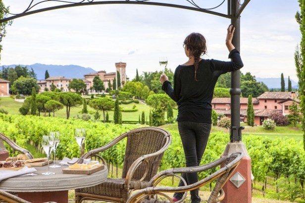 Cuore del resort è il castello d’origine medievale (oggi di aspetto neogotico frutto di un radicale intervento otto-novecentesco) con il suo magnifico giardino all’italiana, la cui storia si è intrecciata nei secoli con quella di questa terra di confine e di cui furono ospiti personaggi illustri, fra cui Giacomo Casanova (che ne definì i vini “di qualità eccellente”)e Lorenzo Da Ponte, il librettista di Mozart. Tutt’attorno, il dolce saliscendi di vigneti, boschi, prati che si estendono negli oltre 60 ettari della tenuta. Una cornice romantica e bucolica, immersa nel silenzio della natura, dove riprendersi il proprio tempo e trascorrere giornate di vero relax, ritempranti per corpo e spirito.
