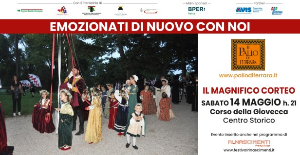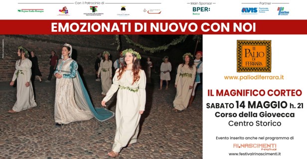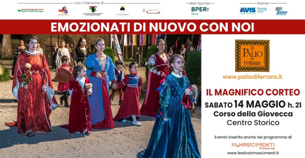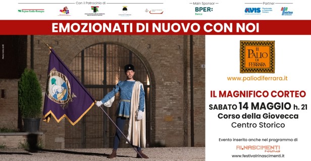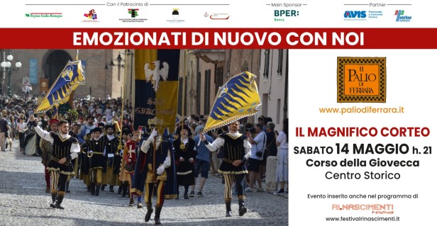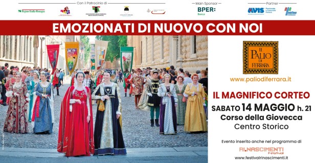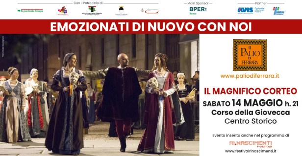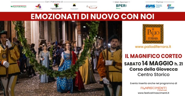 Tra questi, il 14 maggio, alle 21.00, il Magnifico Corteo con oltre mille figuranti della Corte Ducale e delle 8 contrade che con gli abiti rinascimentali sfileranno nel cuore della città, e poi il 29 maggio quando, a partire dalle 15.30, si disputeranno le Corse del Palio di Ferrara in Piazza Ariostea: la corsa delle putte, la corsa dei putti, la corsa delle asine e la corsa dei cavalli. Emozioni e divertimento, storia e arte, giochi antichi, spettacoli e sbandieratori, si mescolano nel ricco programma – su www.paliodiferrara.it -, in cui non mancano momenti di enogastronomia, impreziositi dai piatti preparati ad hoc dagli studenti del Liceo Artistico Dosso Dossi.