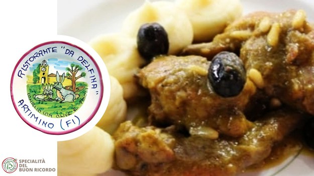Ingrediente principe della ricetta di oggi il coniglio che viene proposto accompagnato da olive e pinoli per la preparazione di un gustosissimo “Coniglio con olive e pinoli”, piatto proposto dal Ristorante Da Delfina di Artimino (Prato) e abbinato al “Piatto del Buon Ricordo”.