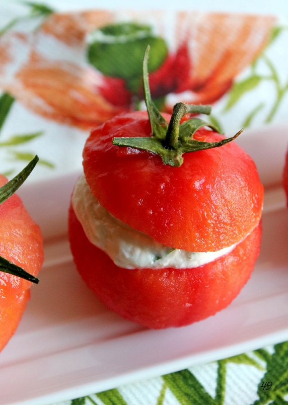 Naturalmente gli ingredienti principali sono la “mitica” Robiola di Roccaverano e i pomodori: “Pomodori ripieni di Robiola di Roccaverano profumata di basilico”.