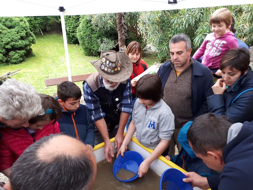 Per quanto riguarda i laboratori, sarà nuovamente presente Silvio Bianco dell’associazione “Oro in Natura”, uno dei più qualificati cercatori italiani del metallo più prezioso, molto conosciuto anche all’estero, che consentirà ai bambini di cercare le pagliuzze d’oro nelle vasche predisposte all’organizzazione. Ad ogni cercatore in erba sarà consegnata una provetta con qualche piccola pagliuzza. Saranno nuovamente disponibili la sabbiera per la ricerca dei fossili, il laboratorio di costruzione dei modelli molecolari curato dal professor Daniele Mazza e da Alessandro Costantini, lo stand di archeologia sperimentale proposto da Mauro Cinquetti, che illustrerà i suoi studi sull’età del bronzo. Saranno presenti con i loro stand l’Associazione Micromineralogica Italiana con una collezione di microminerali della Pietra di Luserna curata da Bruno Marello, il Museo Regionale di Scienze Naturali di Torino, il Museo Astense di Geologia, Mineralogia, Arte mineraria e X-Cristallografia, il Museo Geologico Sperimentale del CAI di Giaveno, il Dipartimento di Scienze della Terra dell’Università di Torino, l’Istituto Nazionale di Astrofisica, l’Ente Parco Paleontologico Astigiano, Scoprimimiera e l’Ecomuseo delle miniere della Val Germanasca.