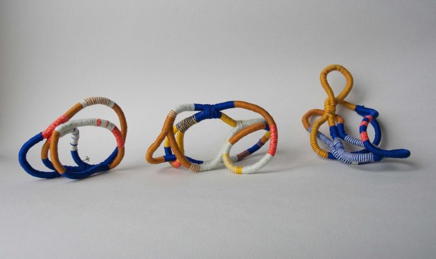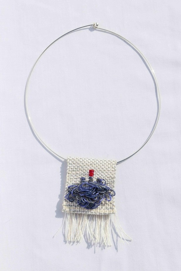 Tra queste, Cristina Busnelli, che presenta Caliset: una collana formata da tre piccoli arazzi di diverse forme con segni colorati in rilievo, da portare al collo o da riporre in un piccolo contenitore come elemento di decoro.