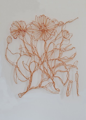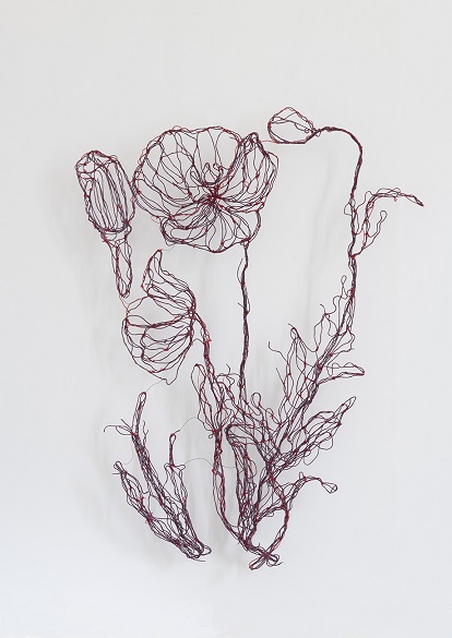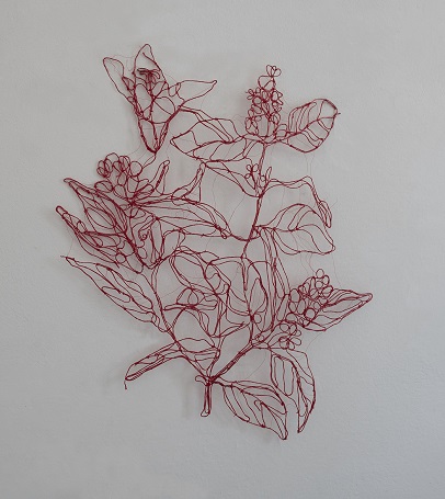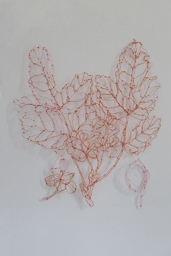 Una suggestiva unione tra il filo, che disegna nell’aria questi elementi naturali e gli spazi suggestivi dell’atelier, che si trasformano nella sua pagina, bidimensionale e tridimensionale allo stesso tempo, offrendo una libertà progettuale e interpretativa che innesca una riflessione sulla caducità del mondo naturale: alcune piante sono infatti a rischio estinzione, altre ancora sono state chimicamente sostituite.