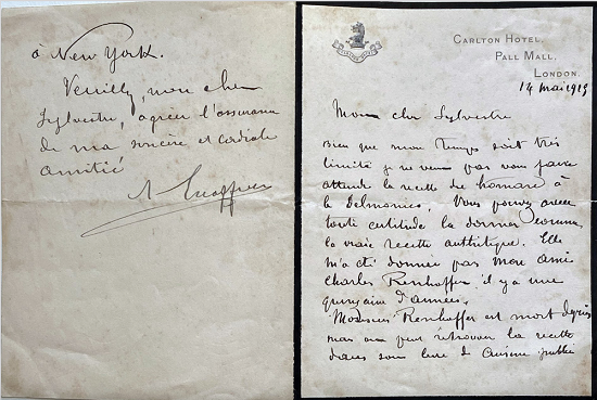 “Carlton Hotel, Pall Mall, London. 14 mai 1918. Mon cher Silvestro, bien que mon temps soit très limité je ne veux pas vous faire attendre la recette…” inizia così una delle lettere indirizzate dal grande chef francese Auguste Escoffier al suo primo discepolo italiano, un piemontese, più precisamente originario di Cocconato d’Asti: Silvestro Cavallito.