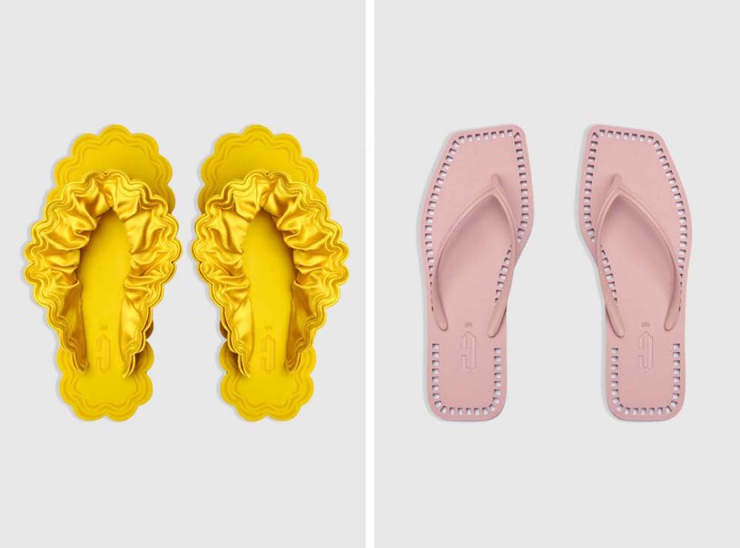 Le proposte del marchio emergente di calzature sostenibili, calzature disegnate da Mariela Schwarz Montiel. La linea di flip-flop e slip-on luxury e femminili.