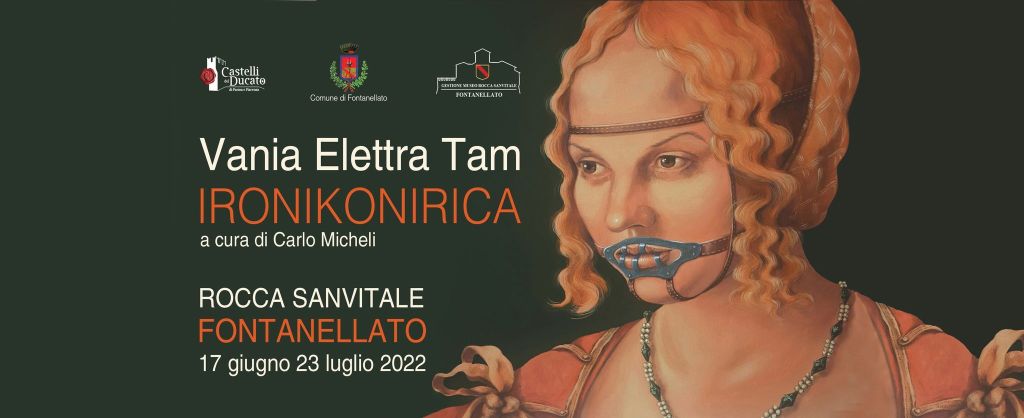 Sede del circuito Castelli del Ducato, l’elegante Rocca Sanvitale a Fontanellato (PR) ospita IRONIKONIRICA la mostra di Vania Elettra Tam, curata da Carlo Micheli e patrocinata dal Comune di Fontanellato, che è ospitata nelle sale poste al piano terra a pochi passi dall’affresco di Diana e Atteone, famosa opera giovanile del Parmigianino.