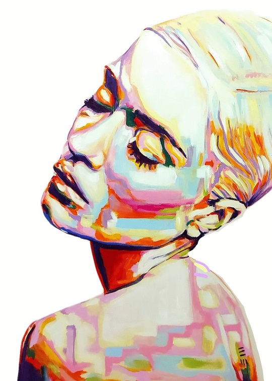 L’artista foggia i lineamenti di quella ricerca, raddolcendone le pieghe, che rivelano, al ciglio, venerei ovali. L’occhio dell’osservatore viene sedotto, indi, dall’apparenza di queste moderne veneri, che l’artista veneta fiorisce dalle acque di un mare esperienziale personale. Doma,col pennello, la “lieve spuma delle onde” , che preserva la propria brada indole, eppur si abbandona, poi, sulle tele, come perfetta crasi estetica della mutevolezza femminile. Le forme celano, invero, cangianti umori e policrome riflessioni quotidiane, celebrando, alfine, la verità di una consapevolezza, che, di volta in volta, si concreta.