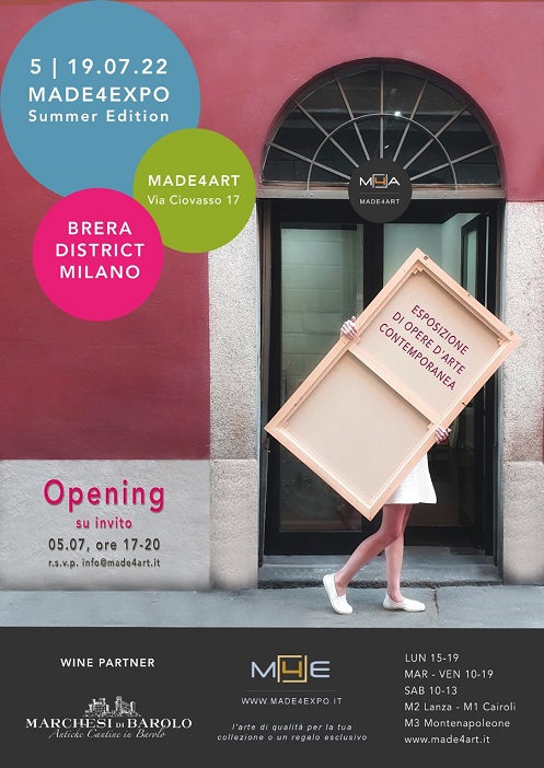 Dal 5 al 19 luglio 2022 una selezione di opere d’arte MADE4EXPO verrà presentata al pubblico presso la sede di MADE4ART in Via Ciovasso 17, nel cuore di Brera, il quartiere dell’arte di Milano, con serata di opening su invito martedì 5 luglio dalle ore 17 alle 20.
