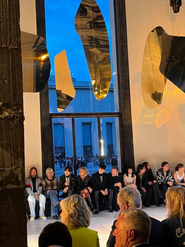 Gli artisti sono stati invitati personalmente dal direttore creativo di Celine, Hedi Slimane e hanno seguito la sfilata dalle prime file attirando su di loro l’attenzione con i loro outfit impeccabili.