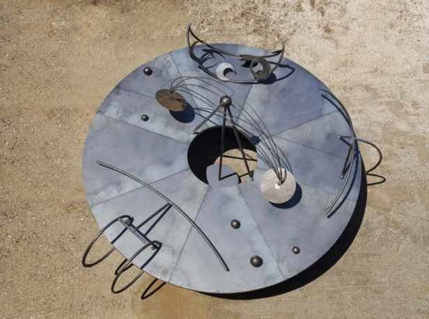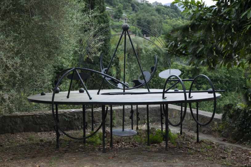 Cascella e Scarmiglia, per le loro forme arcaiche, usano il ferro e il cemento per datare il nostro tempo tecnologico e precario. In una conversazione a due – anzi a tre considerando Vicino – riprendono il fantastico e l’alchemico del Parco, inglobando tutto in un gioco di forma e luce intenso e fluido, in assoluta relazione e armonia con lo spazio.