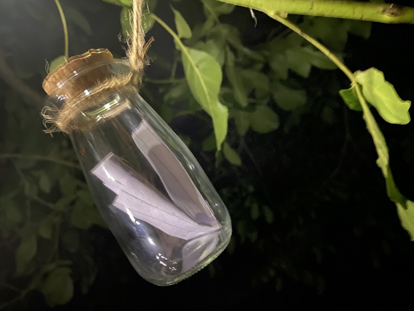 Camminando per i sentieri, sembra di sentire le voci degli alberi che sussurrano alle orecchie parole da catturare sulla carta e riconsegnare alla natura, lasciando i messaggi in un punto indicato.