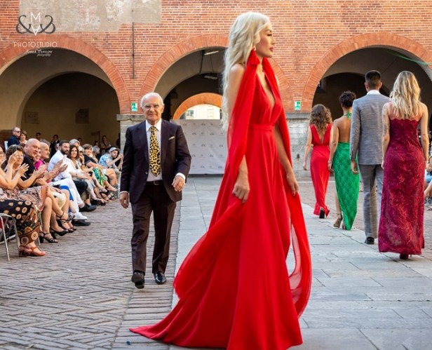 I Sessant’anni di carriera dello stilista Umberto Michele Perrera hanno commosso il pubblico presente. Uomo dedito alla moda che, da decenni, rappresenta approvazione in tutto il mondo, le cui opere sartoriali hanno riscosso successo e consensi. Partecipa al Festival della moda a Sanremo, appuntamento che nasce nel 1951 in coincidenza con il primo festival della Canzone di italiana presso il Casinò e non il Teatro Ariston, in cui manda in passerella i capi nel 1968. Nell’anno 1971 annovera l’invito ad associarsi all’Accademia dei Sartori di Roma, realtà nata nel ‘700. Dal 1974 in poi di conferma punto fermo per delle sfilate annuali svolte presso il Teatro Regio di Torino. Da 50 anni confeziona anche abiti da donna. Gli anni 80 e 90 sono per Il Cav. Perrera fonte di ricerca sartoriale, i cui riconoscimenti lo identificano tra i promotori delle nuove a sofisticare tecnologie innovative che inizia a sdoganare dal 2000 in poi. Da qui nasce una pubblicazione denominata «Trattato per le Sartorie», capolavoro divenuto virale in tutto il mondo le cui tecniche di manifattura contenute vengono apprezzate nei salotti più influenti del settore. Il Cav. Perrera è specializzato nell’ideazione, la realizzazione ed il confezionamento di abiti di altissimo livello sia per l’uomo che per la donna. Nel 1970 si classifica secondo all’allora rinomatissimo concorso «Forbici d’Oro», conseguendo il premio denominato «Il Centimetro d’Oro». Con un curriculum di successi e più di ottant’anni sulla carta d’identità riesce stregare l’intero Broletto, annoverando consensi ed applausi.