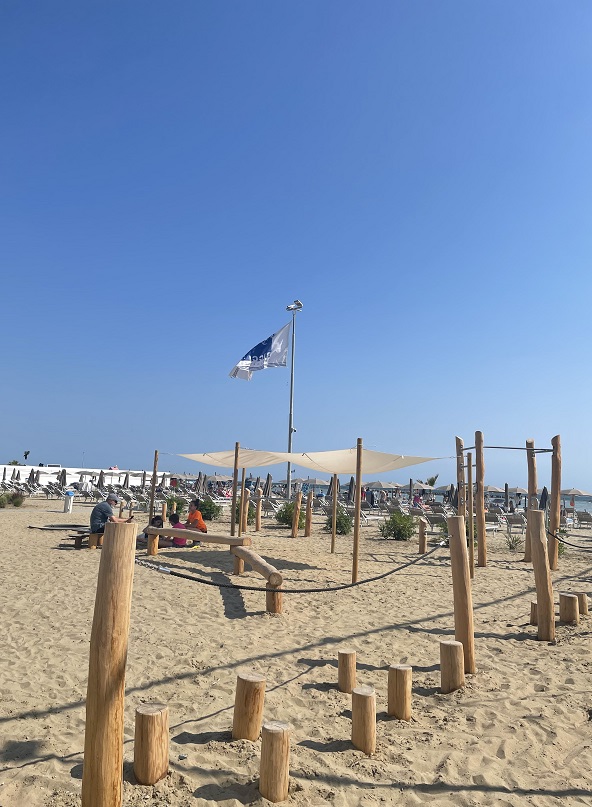 Un luogo di relax, una nuova grande spiaggia privata che vanta la possibilità di sdraiarsi al sole in libertà, godendo di ombrelloni molto distanziati tra loro (un ombrellone sulla Ricci Beach è nello spazio che normalmente è occupato da due sulla Riviera Romagnola), e di servizi all’avanguardia, come i giochi in legno per i bambini e la palestra open air, nuove cabine, il campo da beach volley e da beach tennis.