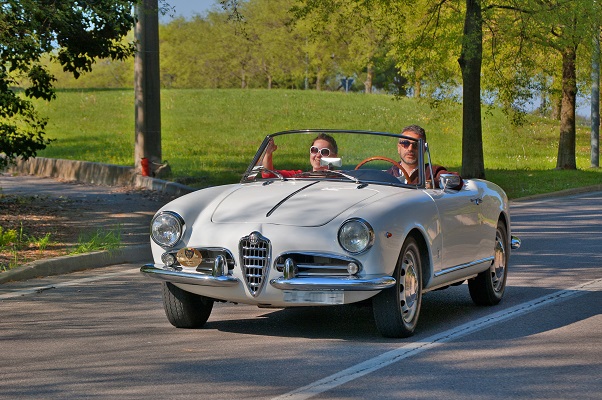 L’emozione sarà palpabile quando si stringerà tra le mani il volante di un’Alfa Romeo Duetto Osso di Seppia rosso fuoco o magari di una elegante Giulietta Spider decappottabile.