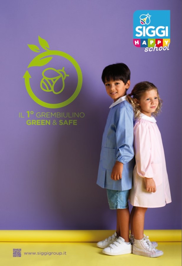 Siggi Group, marchio da sempre attento e all’avanguardia sul tema della sostenibilità, lancia il greenbiulino, il primo grembiulino realizzato interamente in cotone organico conforme al Global Organic Textile Standard (GOTS) e poliestere riciclato conforme al Global Recycled Standard (GRS). Utilizzare il grembiulino aiuta l’ambiente perché è una scelta che permette di ridurre il consumo di altri abiti, di acqua e di energia.