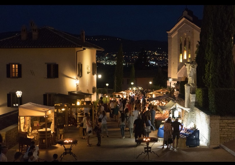 Il piccolo borgo di Solomeo, frazione del comune di Corciano, in provincia di Perugia, infatti, torna indietro nel tempo, in un’epoca fiera e gloriosa che rivive in genuini gesti quotidiani e nella schietta ospitalità di una delle gemme del territorio in una festa intrisa di valori autenticamente popolari, dove osti e locandiere rinascimentali aspettano gli ospiti per degustare i piatti tipici della cucina umbra.