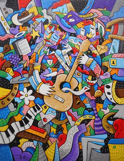 “Genesi – L’armonia del Kaos” ha lo scopo di approfondire l’arte e il linguaggio pittorico di SKIM, le cui opere vengono esposte e sono presenti nelle collezioni di tutta Europa e nel mondo. Attraverso una narrazione divisa in sezioni tematiche, l’esposizione ricostruisce il percorso che l’artista ha intrapreso sulla tela, a partire dai primissimi disegni che ne hanno segnato l’esordio fino alle opere più note che gli hanno permesso di affermarsi in tutto il mondo: opere raffiguranti “Personaggi” come arcimboldi moderni e “Omaggi” ai grandi maestri della pittura, ma soprattutto grandi universi armonici costellati di oggetti e particolari segni distintivi provenienti sia dal mondo della fantasia che dal nostro quotidiano, chiamati “Kaos”. Un’immersione totale nel mare della fantasia, in cui le forme e i colori insieme a piccole barchette, lettere, pennelli, matite e musica proiettano in una dimensione immaginaria in cui le figure varcano il limite fisico dalla tela e prendono letteralmente forma e vita.