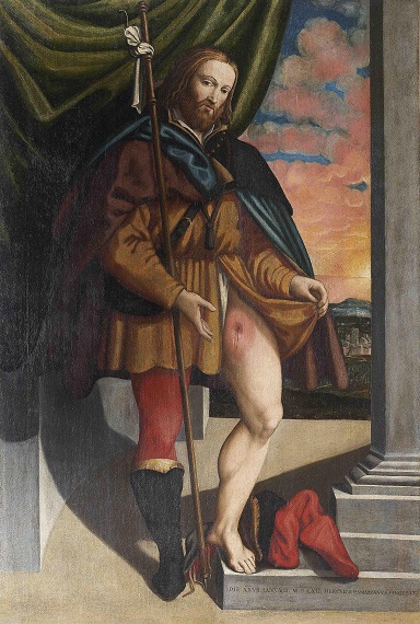 I pellegrini ed i devoti che in grande numero percorrevano gli itinerari di fede europei sono stati più volte rappresentati dagli artisti che ne hanno messo in evidenza le particolarità dell’abbigliamento, con i segni caratteristici dell’avvenuto pellegrinaggio che consentiva di riconoscerli. I santi invocati durante il percorso, come san Rocco e san Giacomo maggiore, venivano dunque effigiati dagli artisti con le vesti tipiche dei pellegrini al pari dei santi che nel Medioevo avevano portato la parola di Cristo in luoghi lontani e pericolosi, come san Giacomo della Marca raffigurato sempre con il bordone.