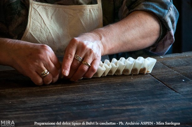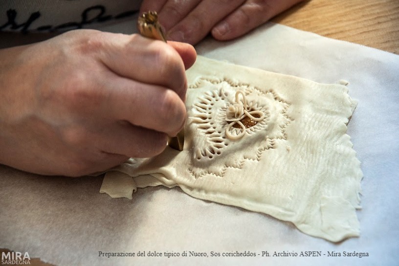 In comune, tutte le cortes apertas, hanno l’ottima abitudine di offrire in versione street food specialità locali da consumare passeggiando per le strade animate o direttamente a casa del produttore: se non fosse bastato l’elenco di cui sopra ad invogliarvi, ecco che vi verranno proposti anche malloreddus (gnocchetti sardi), deliziosi involtini di pane lentu (il carasau non tostato) e formaggio fuso, purpuzza e patate nonchè l’immancabile porcetto arrosto. I dolci poi toccano le vette più sofisticate con la celeberrima seada (dolcezza alla semola ripiena di formaggio), il croccante di mandorle (gattò), su pistiddu – un involucro di pasta che racchiude sapa, mosto cotto o in alternativa miele, ornato con decori finissimi – e le casadinas (dolcetti deliziosi con ricotta di pecora o formaggio fresco e scorza di limone, più abitualmente preparati in periodo pasquale).