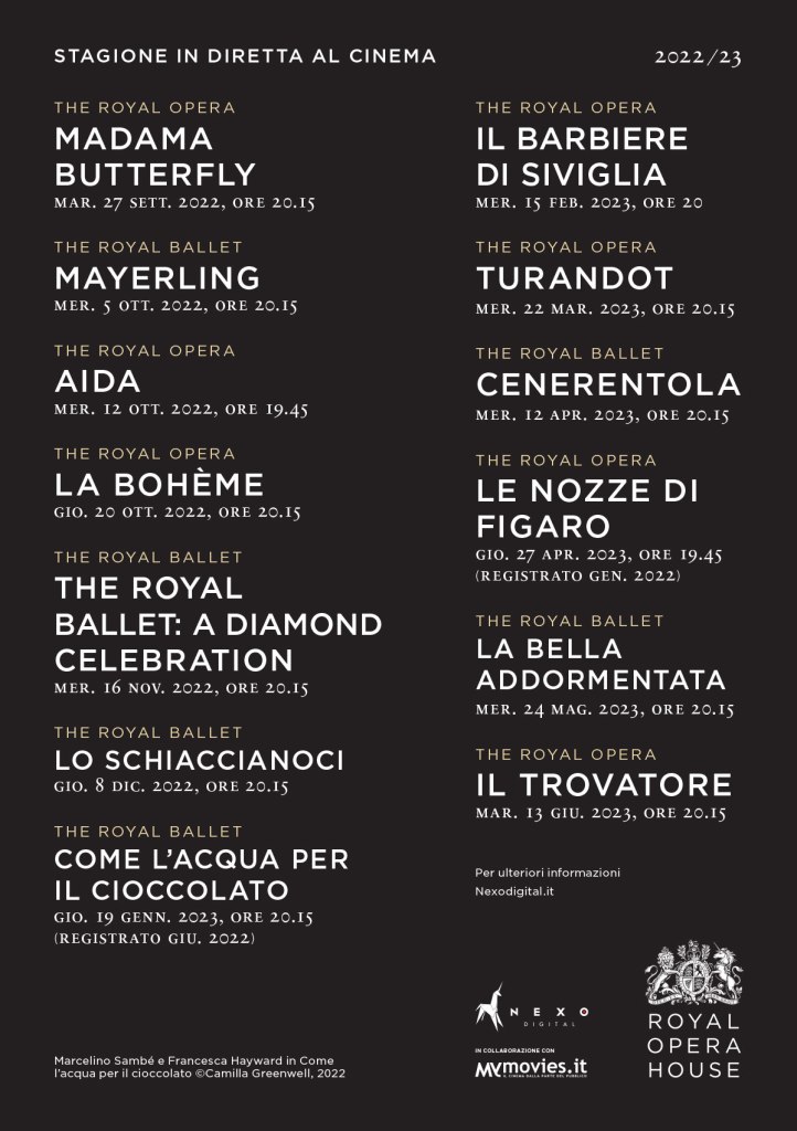 La stagione della Royal Opera House è distribuita nei cinema italiani da Nexo Digital (elenco a breve su nexodigital.it) in collaborazione con MYmovies.it.