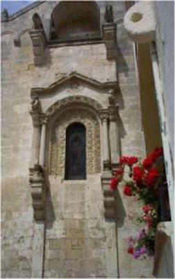 A Matera, sfruttando gli anfratti naturali, in maniera sempre più sistematica, l’uomo si insinua all’interno del banco calcarenitico giungendo a plasmarlo. Così facendo arriva a conferirgli la forma più consona rispetto alla destinazione d’uso prescelta. Questo lavorìo ottenuto “per via di levare” viene svolto prevalentemente all’interno. Pertanto, nel caso di edifici adibiti al culto, la corrispondenza degli elementi artistico-architettonici caratterizzanti la tipologia edilizia è rispettata. Contrapposto al lavoro di scultura degli interni, all’esterno si procede “per via di porre”. Tanto nel caso più semplice, tompagnando l’apertura naturale della cavità, quanto in quello più complesso, elevando veri e propri corpi di fabbrica esterni.