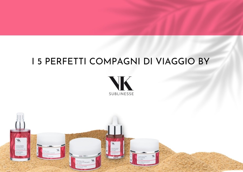 Quante volte preparando la valigia per le vacanze non si sa quale prodotti portare per riuscire ad avere una skincare routine completa senza esagerare con il numero di cosmetici? VK Sublinesse, eccellenza italiana per la cosmesi bio naturale, propone cinque referenze pensate per essere portate comodamente con sé, ideali per ovviare al problema del limitato beauty-case da vacanza. I perfetti compagni di viaggio rispecchiano dunque una skincare routine completa, partendo dall’acqua micellare, passando dallo scrub e maschera viso e terminando con un siero e una crema idratante 24 ore, perfetta sia per il giorno che per la notte.