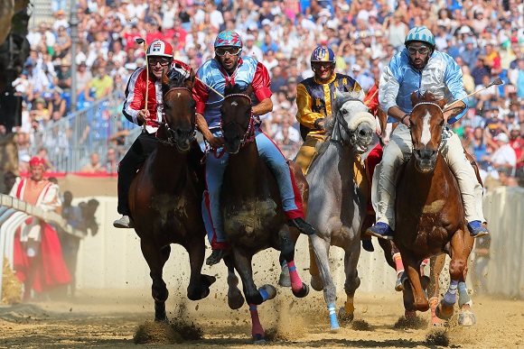 Alle 14 è in programma l’affascinante sfilata storica del Palio, la più grande d’Italia, con 1200 figuranti. Un imponente corteo che rievoca la storia medievale della città tra il XII e XV secolo.