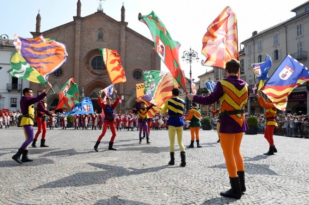La mattinata termina con l’esibizione, in Piazza San Secondo, degli sbandieratori dell’A.S.T.A: il biglietto da visita del Palio di Asti in Italia e nel mondo. Il Gruppo, composto da circa 80 atleti tra tamburini e sbandieratori, offre una spettacolare varietà di esibizioni. I costumi sono fedeli riproduzioni medievali e le bandiere presentano i colori dei Borghi, Rioni e Comuni che corrono il Palio.