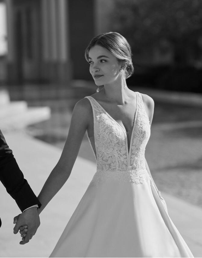“Ultimamente i tempi – prosegue Monica Gabetta Tosetti – si sono molto accorciati, ma se dovessi dare un consiglio professionale direi loro di non fare tutto all’ultimo minuto, ma di calibrare bene la scelta, lasciandosi anche un po’ guidare. In atelier ad esempio abbiamo tantissimi marchi e una collezione in esclusiva, la Bridal Couture 2023 Tosetti, che quest’anno ancora di più punta sulla versatilità, con una serie di modelli dalle linee basic tutti da interpretare, per accontentare tutti gli stili”.
