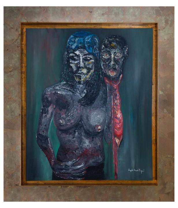 Persuade la materia oleosa ad abbandonarsi tra le sue palme, dopo aver reso trame e orditi meno ingordi, praticandovi l’imprimitura. La mano elargisce, decisa, icastici lineamenti, poi, il pennello rapisce generose quantità di umori, sottratti ad un pentagramma tonale sapido di mistero, e li sposa ai frugali diastemi creati, ricamandovi “grazie e peccati”; il diacronismo di questi ultimi crea lo spessore esperienziale di una viva presenza. Diversamente, invece, accade, quando l’artista affronta la levità del pigmento acrilico: il pittore aromatizza, talvolta, l’acqua, con il caffè o il tè, infondendo alla mescida le verità del risveglio o della cura, e ingaggiando, invero, una danza gestuale completamente diversa, rispetto alla precedente. I colori assumono un temperamento inquieto, ‘sicché l’artista deve domarne l’indole, raccogliendone i passi, per dirigerli, come un direttore d’orchestra, e creare virtuosismi improvvisati’.