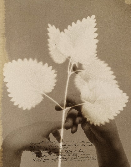 Da questa osservazione della natura e della sua imperfezione, la Calò insieme ai partecipanti del laboratorio hanno trasformato le erbe spontanee (le cosiddette “erbacce”) in impronte su carta fotografica grazie alla tecnica del fotogramma, la stessa tecnica usata da molti artisti delle avanguardie del ‘900 come Man Ray. Alessandra Calò ha poi dato vita a sovrapposizioni di immagini e simboli che rimandano al concetto di fragilità e umanità, unendo alle forme delle erbe quelle delle mani stesse dei partecipanti. Un nuovo e innovativo modo di concepire l’immagine che racconta il gesto di cura evocato dai protagonisti delle fotografie fino ad arrivare alla simbiosi e al parallelismo con la natura e l’umanità raffigurata.