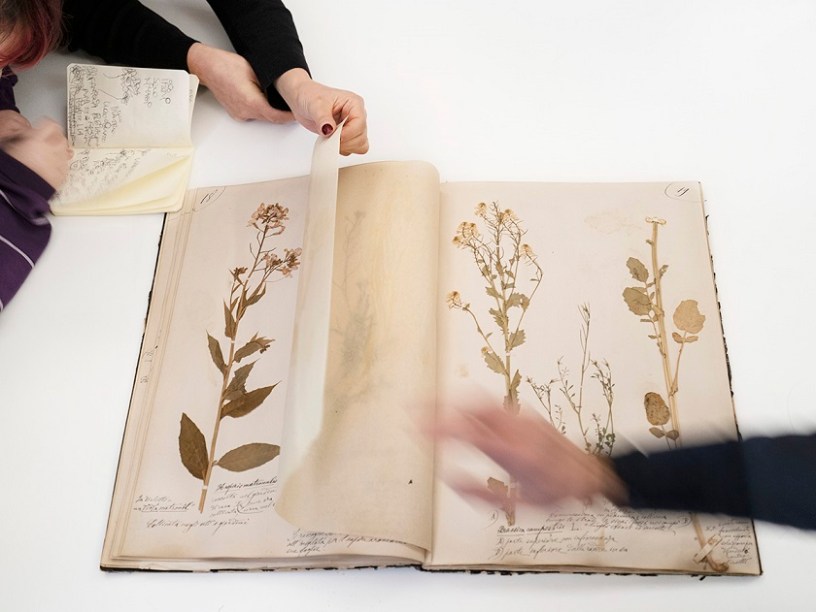 “Incuriosita dalla ricca collezione custodita ed esposta nel museo, il focus è caduto su ciò̀ che non è visibile al pubblico: una serie di erbari custoditi in un vecchio armadio nella Saletta della Botanica – così racconta l’artista – Nonostante il carattere scientifico che li contraddistingue (famosa è la collezione settecentesca di Filippo Re), ci siamo soffermati sullo sguardo romantico scoperto sfogliando un erbario dell’allora quattordicenne Antonio Casoli Cremona (1885) che catalogava in maniera amatoriale tutte le erbe presenti nel suo giardino e nei dintorni della città”.