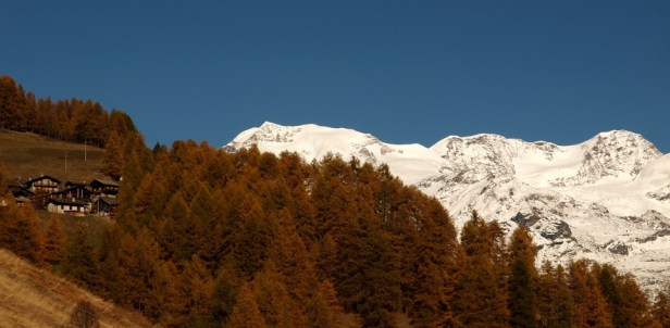 Dai ghiacciai che imbiancano tutto l’anno le vette oltre i 4000 m del massiccio del MonteRosa, a larici e conifere d’alta quota, fino a ciliegi, frassini, aceri e betulle di media montagna: un vero e proprio tappeto giallo e arancio.