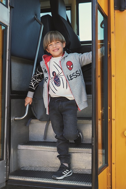 Immancabili le camicie con fantasia tartan, come quella rossa e nera dei maschietti perfetta anche da indossare sbottonata in sovrapposizione alle t-shirt. Comodità e stile con le felpe girocollo e i pantaloni cargo. Per gli amanti dei supereroi, Spiderman è il protagonista di una linea tutta da scoprire nei toni del grigio, nero, rosso e blu, mentre per chi adora la tecnologia c’è un’ampia serie dedicata ai videogiochi, ricca di icone colorate e stampe a tema. Tante le opzioni in stile college nella sua declinazione più bon ton, con maglioncini decorati a rombi, cardigan con fasce colorate e polo con ricamo; mentre per le anime più sportive felpe con e senza cappuccio, t-shirt con colori a contrasto e maxi stampe di lettere e numerisul petto che strizzano l’occhio alle tipiche divise da basket e football americano. Per i bimbi più piccoli grande spazio alla natura con stampe di dinosauri o teneri orsetti. I colori spaziano da quelli più avvolgenti del bosco a quelli freddi ispirati all’Alaska.