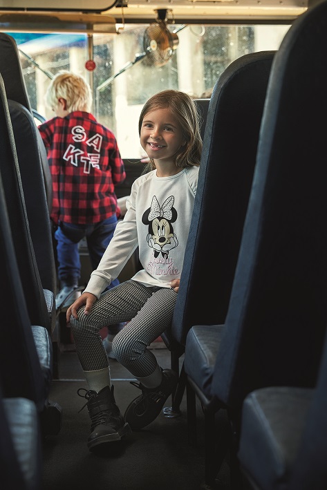 Per le bimbe invece uno stile romantico, dai toni più tenui come grigi, beige, lilla e rosa, ai blu e bordeaux più caldi e brillanti. Ampia la selezione di capi con cui divertirsi ogni giorno a creare il proprio mix & match e trovare la perfetta combinazione tra colori e stampe. Le proposte vanno dalle maglie e pantaloni più basic a opzioni ricche di dettagli come le maniche a palloncino o impreziosite da rouge, le balzeo levite arricciate. E per tutte le età capi in ecopelle e denim, ma anche fantasie pied de poule e animalier dai toni delicati,decorate con teneri personaggi tra i quali orsetti, unicorni, gattini e l’immancabile Minnie.