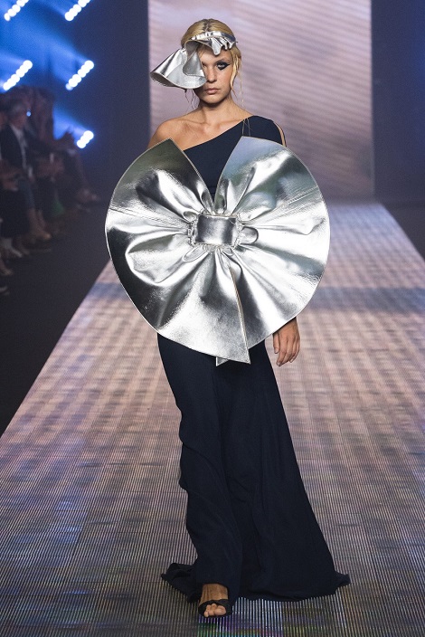 La sartorialità rimane la chiave della collezione, dove si mescolano nuove applicazioni tridimensionali per creare una couture moderna e contemporanea; ricerca di tessuti e accostamenti di materiali inusuali rendono questa ultima collezione speciale e adatta a una donna che vuole mostrarsi, in modo glamour e attuale. L’ampia palette di colori ci riporta nel viaggio immaginario dello stilista dove si mescolano sfumature di rosa cipria, bianco, nero, blu notte, bluette, fucsia e blu elettrico, con inserti di pelle specchiata gold, silver, platino e iridescente.