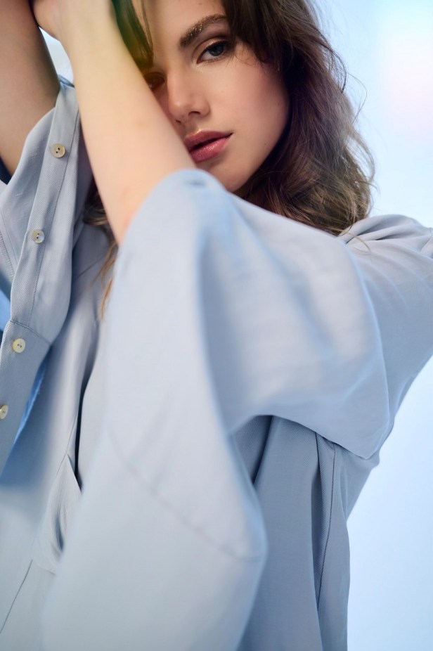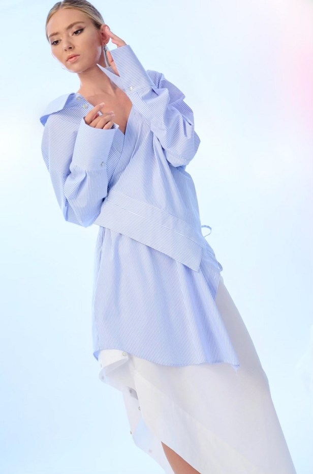 Tema principale la leggerezza, la vocazione precoce della designer che da un imprinting iniziale sfocia nella realizzazione di un sogno. Per Indra Kaffemanaite quello di creare moda affonda le sue radici nella sua fanciullezza, in Lituania, per arrivare a una visione della camicia bianca come ispirazione, mai così sofisticata, pur conservando il suo Dna iniziale.