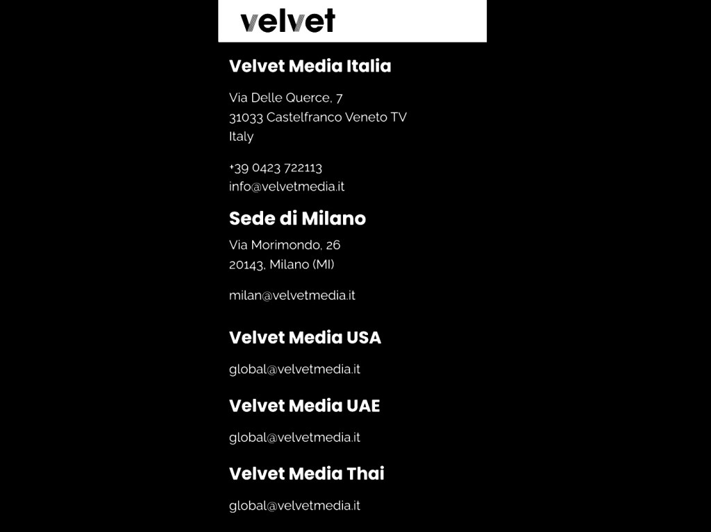 Sempre la tua Velvet ha lavorato per note aziende italiane e internazionali quali Sun68, Aeronautica Militare, Matilde Vicenzi, Segafredo, Burger King, Bycicle line, Hurom Italiam Cycle, Revolver Requeen Venexia, Zanetti 1965, Cadica, Lionlap, White Milano, Roll Skater, Montegrappa, Intercom, Brescia Calcio S.p.A., Elco, Sisal, RACR, ILS discount, Deutsche Bank, Rossotono, Samo, Apta Sport, McDonald’s e molte altre ancora. Qual è la peculiarità a denominatore comune grazie alla quale, supponi, la tua agenzia ha guadagnato la fiducia e la stima di tutte le sopracitate realtà? “Penso che i motivi possano essere diversi. Forse, direi che determinante sia stato soprattutto il mix di risultati e approccio. Ci tengo molto che il modo di gestire i rapporti con clienti e partner sia sempre elegante e gentile… sono convinto, infatti, che l’umiltà professionale paghi più della supponenza. È chiaro che se però non si portano a casa risultati, difficilmente un cliente poi continuerà a lavorare con te. Quello che più mi rende orgoglioso è avere molti clienti ricorsivi. Sono loro a farmi capire che il modus operandi è corretto”.