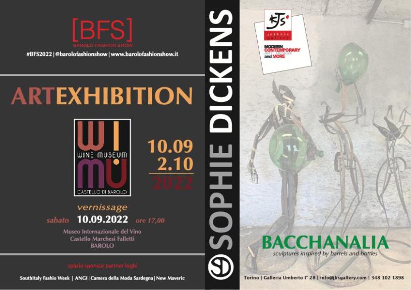 La kermesse internazionale sarà densa di spettacoli, convegni, concorsi per giovani designer e prevede l’inaugurazione di ben due eventi espositivi tra cui Bacchanalia, mostra personale di Sophie Dickens (pronipote del romanziere britannico Charles Dickens) curata da Giò Gatto, che sarà inaugurata il 10 settembre e avrà luogo nel “Wi-Mu – Museo Internazionale del Vino” presso lo storico Castello Falletti di Barolo dal 10 settembre al 2 ottobre.