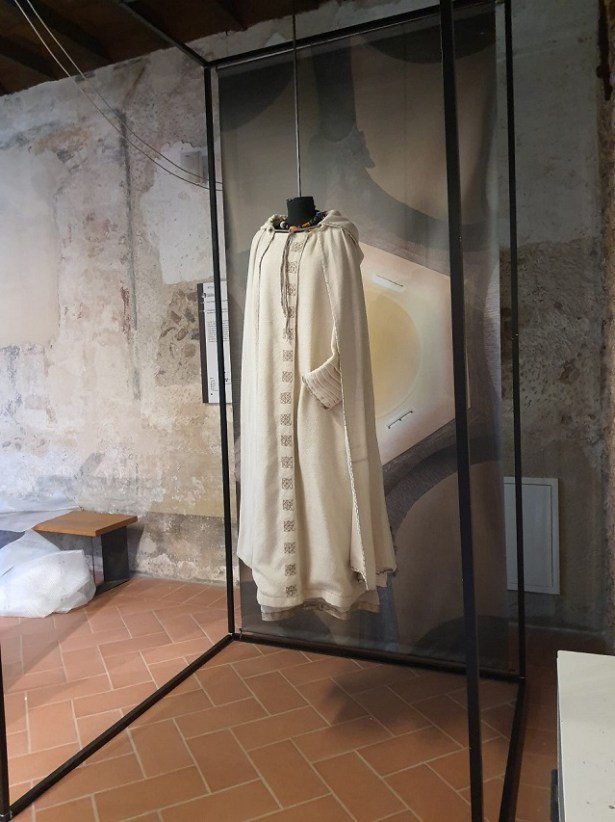 Il risultato è un’accurata proposta delle antiche tecniche di tessitura e di taglio e cucito dell’abito altomedievale.